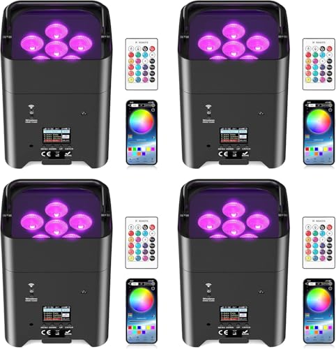 Wireless 6-in-1 RGBWA+UV Battery-Powered Par Lights - 4 Pack for DJ, Disco, Wedding, and Christmas Events with Remote Control