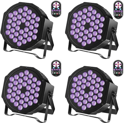 4PCS 72W Blacklight 36 LED UV Stage Light by IR Remote Control and DMX, Black lamp for DJ, Disco, Fluorescent Parties, Body Painting, Glow Effects…