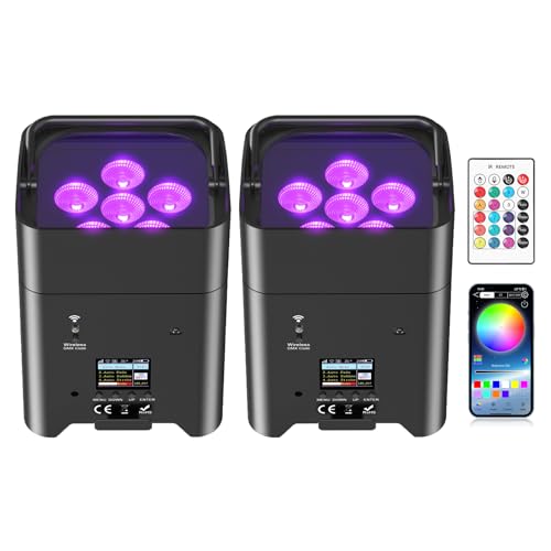 LeLeght 2PCS 108W Battery LED Par Stage Light APP (iOS and Android), Rechargeable RGBWA+UV Spot Uplight Outdoor with Remote Control/DMX Disco Light for DJ Party Bar Wedding Birthday