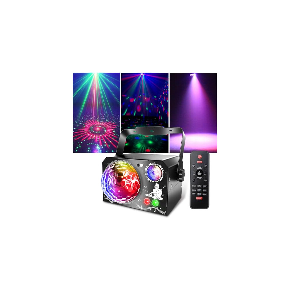 4 in 1 Stage Light, Fwiull Disco Light with Remote Control and Strobe, 65 RGB & UV Light Effects, USB Luminous Disco Music Voice Control