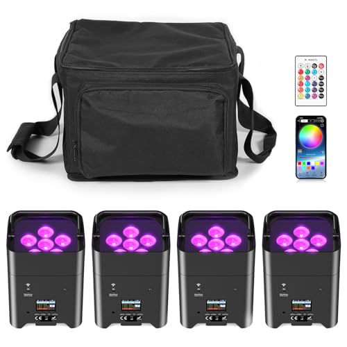 LeLeght 4PCS 108W LED Par Can with Bag, Rechargeable 9600 mAh Battery Powered RGBWA+UV Stage Lights Remote/APP/DMX512 Control Uplight Indoor for Wedding DJ Church Chrismas Dance