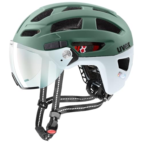 uvex finale visor V - safe city helmet for women and men - with photochromic visor - includes LED light - moss green-cloud matt - 56-61 cm