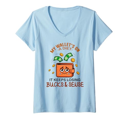 Women's My WALLET'S ON A Diet IT Keeps Losing Bucks and Sense V-Neck T-Shirt