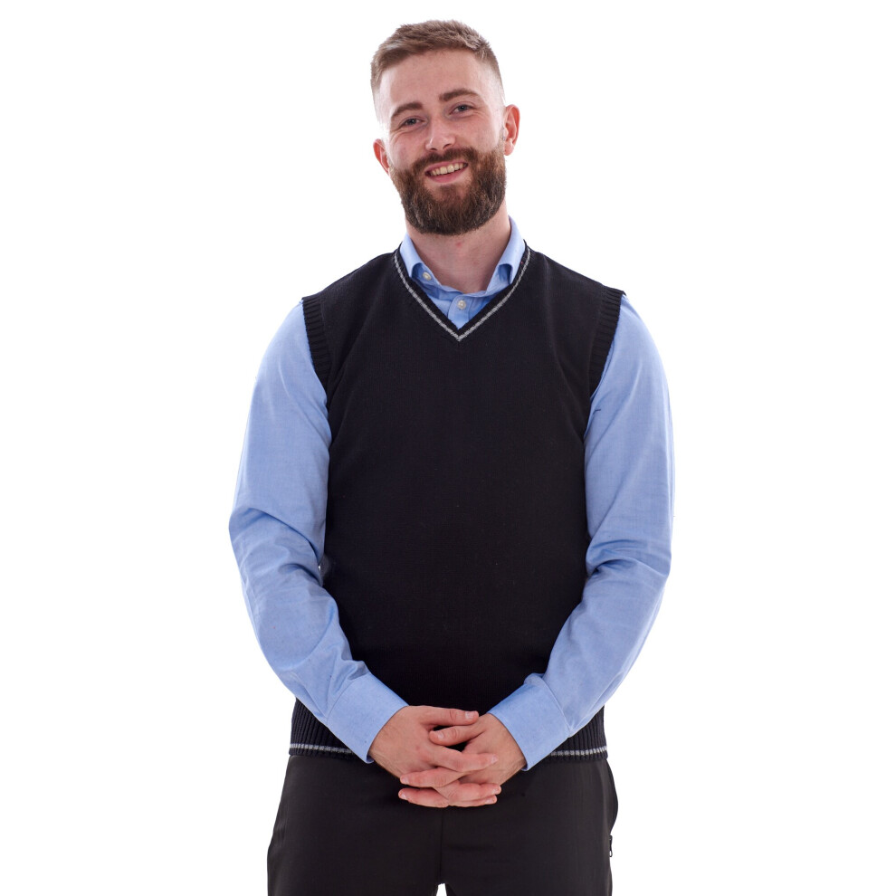 (XL, Black) Russell Collection Mens V-Neck Sleevless Knitted Pullover Top / Jumper