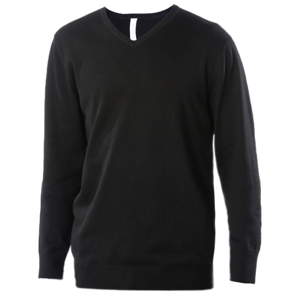 (S, Black) Kariban Mens V-Neck Long Sleeve Jumper / Knitwear
