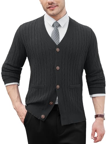yuyungongsi Men's Cardigans with Buttons Classic Mens Cardigans for Men UK with Pockets Gentleman v Neck Mens Jumper Grey Black Knitted Sweatshirts Jumpers for Men UK Dark Gray L