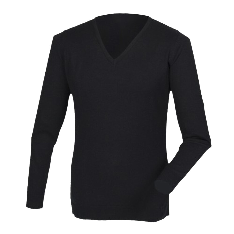(M, Black) Henbury Mens Cashmere Touch Acrylic V-Neck Jumper / Knitwear