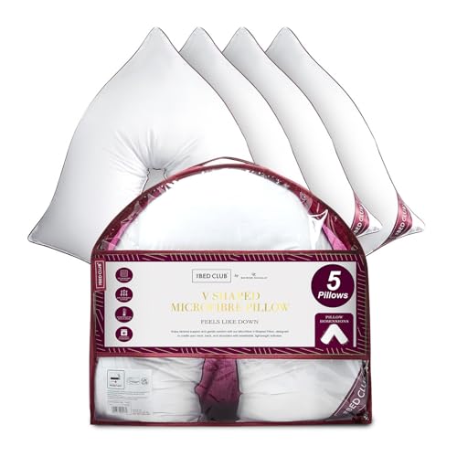 GC GAVENO CAVAILIA V Shape Pillow 5 Pack - Soft & Supportive Orthopaedic Pillows with Microfiber Filling - 36cm Deep Comfort Cushion for Back & Neck Support at Home and Hotel Pillow -(75x40cm), White