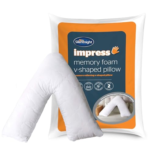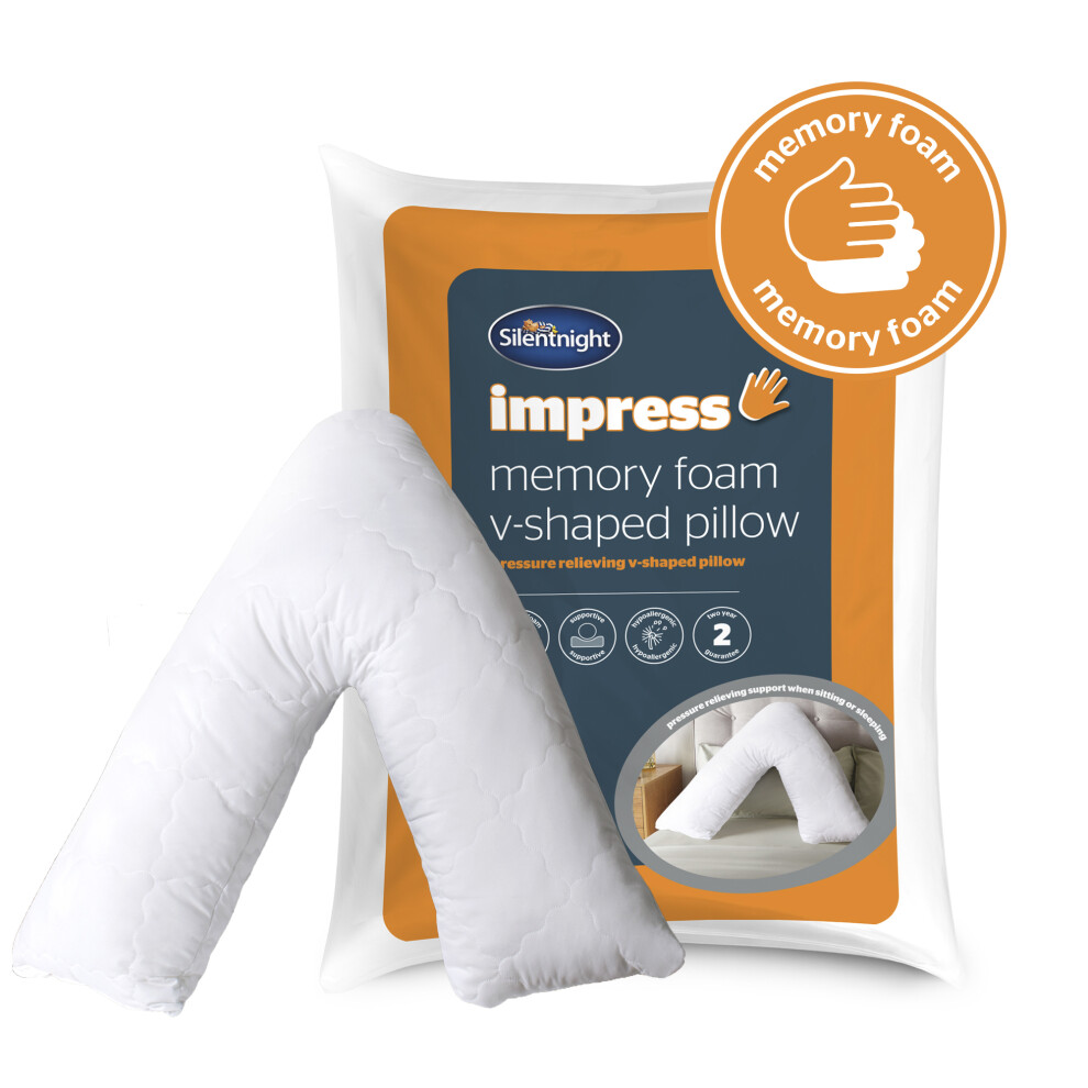 Silentnight Impress Memory Foam V Shape Pillow - Ergonomic Orthopaedic Design Eases Aches and Pains - Head Back and Neck Support for Bed or Sofa - Post Surgery Nursing Pregnancy Comfort Pillow