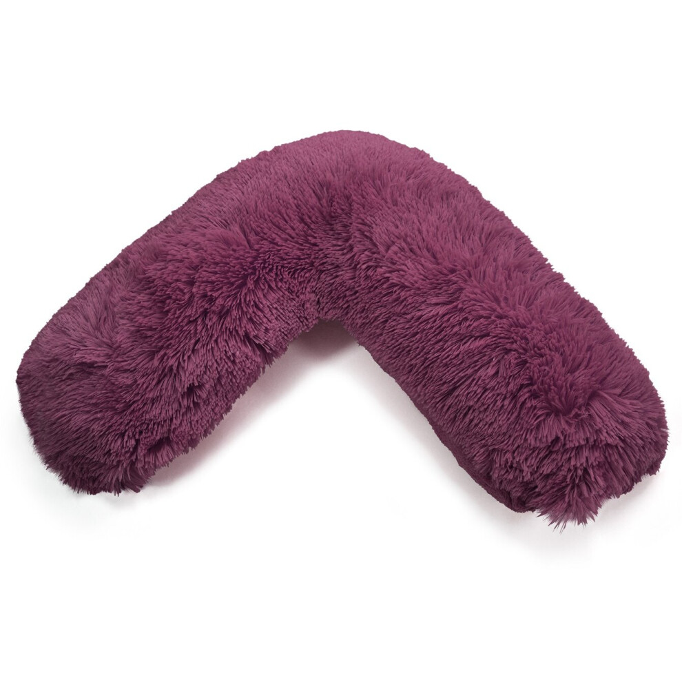 (Plum, V Pillow with Case) Teddy Cuddles V Shape Pillow Case For Support