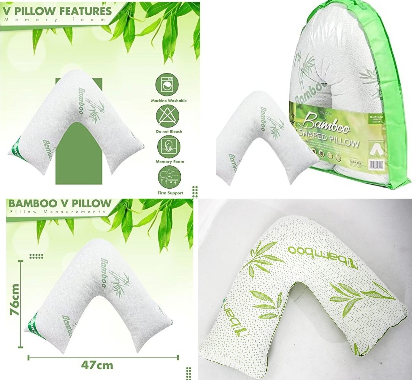Bamboo V Shape Memory Foam Pillow Orthopedic Back Maternity Pregnancy Nursing