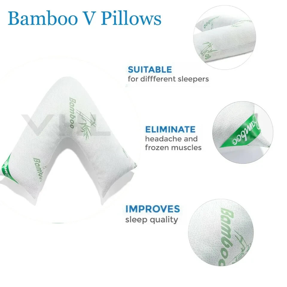 V Shape Bamboo Pillow Memory Foam Orthopaedic & Pregnancy Extra Filled Pillow