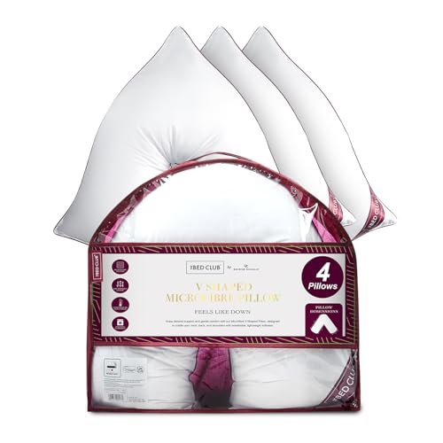 GC GAVENO CAVAILIA V Shape Pillow 4 Pack - Soft & Supportive Orthopaedic Pillows with Microfiber Filling - 36cm Deep Comfort Cushion for Back & Neck Support at Home and Hotel Pillow -(75x40cm), White