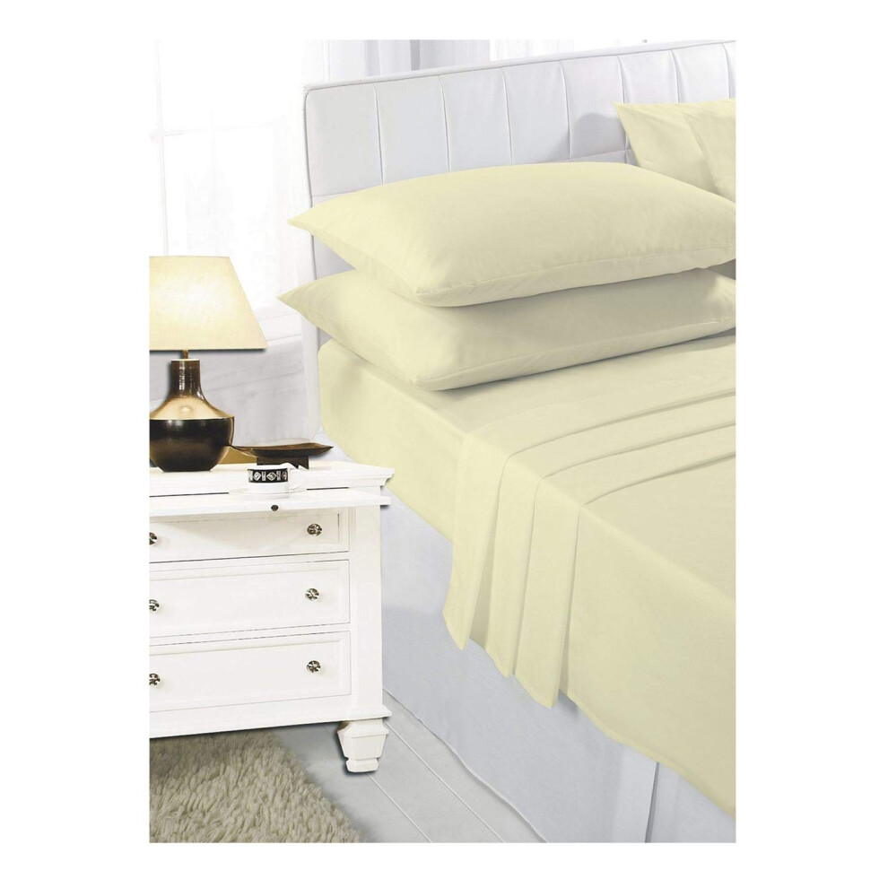 MA ONLINE Luxurious Fancy Extra Deep Plain Fitted Sheets Polycotton Bolster V Shape Pillow Cases (Fitted Sheets Lemon Super King)