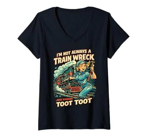 Womens Funny Saying I'm Not Always Train Wreck Just Kidding Toot V-Neck T-Shirt