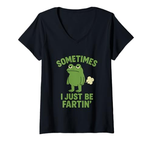 Womens Sometimes I Just Be Farting Funny Frog Cute Animal Toot Joke V-Neck T-Shirt