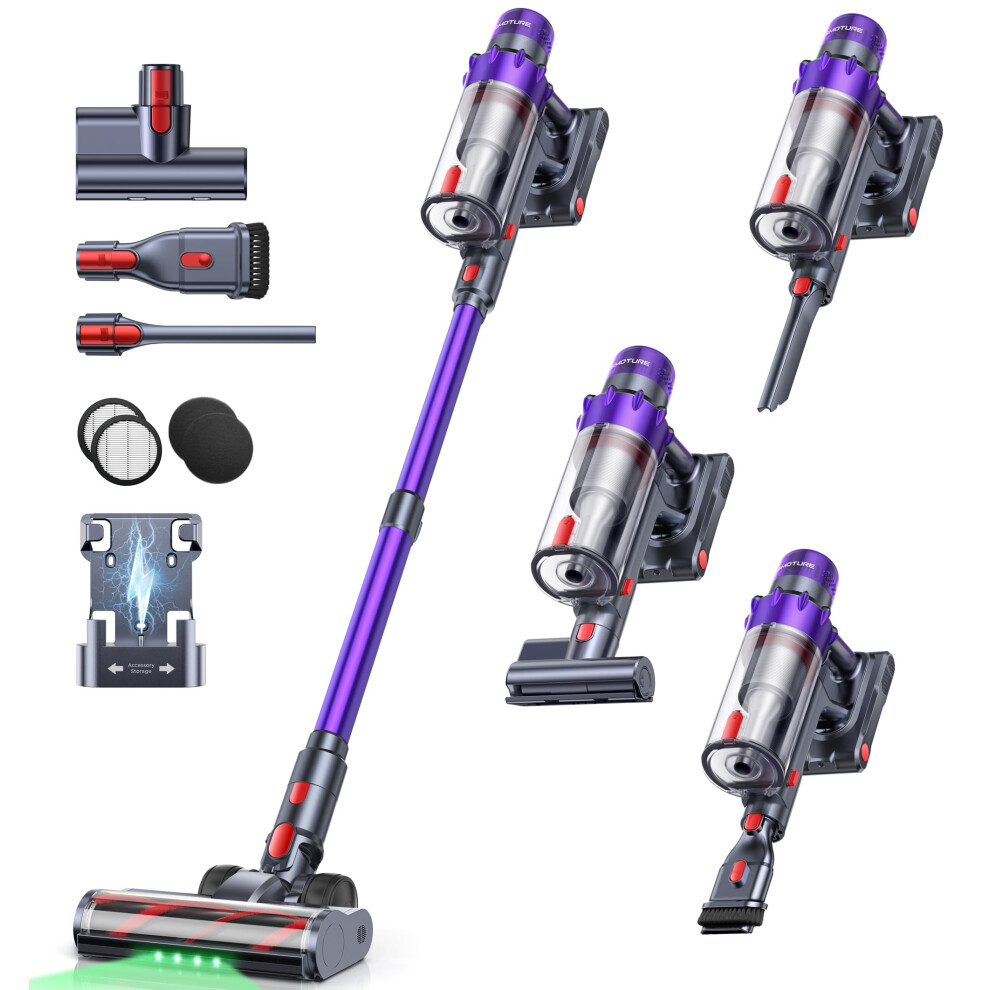 SMOTURE VAC02 Cordless Vacuum Cleaner,600W 50KPA Stick Vacuum with Removable Battery (65Mins ECO), Mattress vacuum,Auto-Mode Touch Screen,Wall Mount,