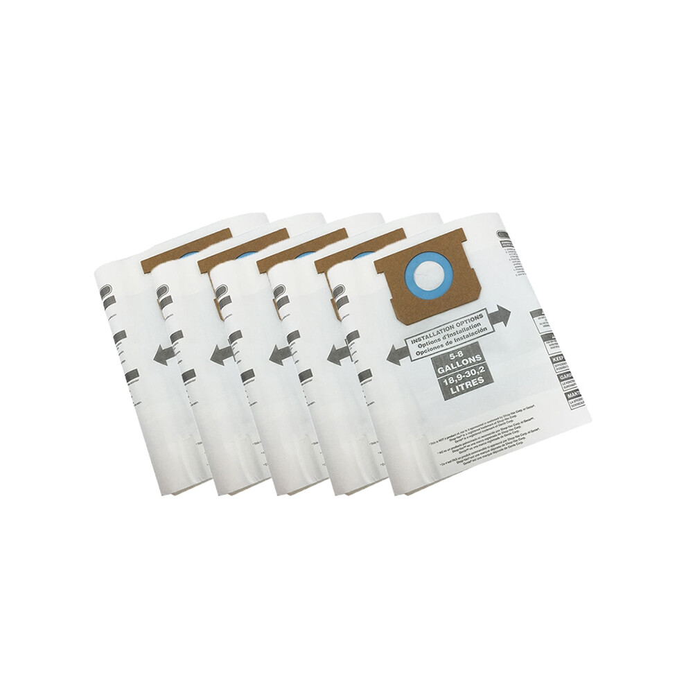 5 Pack Vacuum Dust Filter Bags for 5-8 Gallon Shop Vac Wet Dry Vacuum Cleaners, 90661 906-61 906610