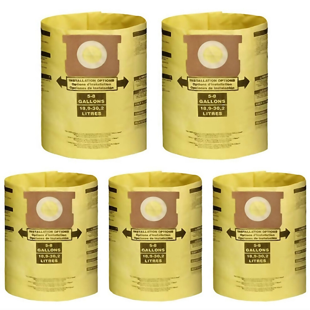 5 Pack Replacement Wet/Dry Vacuum Bags Dust Bags for Shop-Vac 5-8 Gallon Vacuum 9066100 90661 906-6