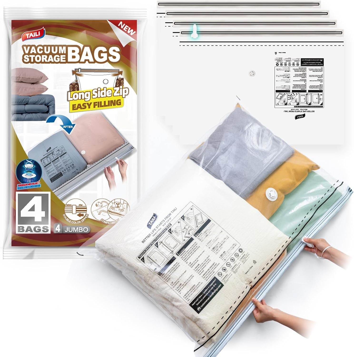 TAILI Vacuum Storage Bags With Long Side Zip 4 Pack 100 x 70 CM Extra Large Vac