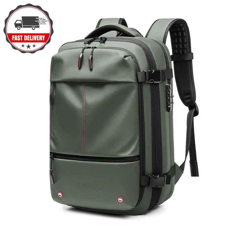 Focket Vacuum Travel Backpack, 36 to 55L Expandable Vacuum Seal Compression Air Vac Back Pack with Pump, Anti Theft Carry on Personal Item Laptop Work Backpack for Men Women (Green)