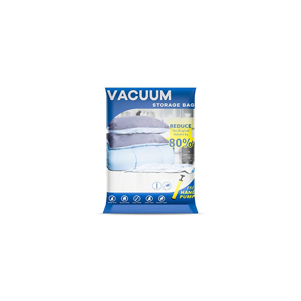UOUNE Vacuum Storage Bags 6 Jumbo Bags - Reusable Saving Space Compressed Vaccum Storage Bags with Pump for Clothes, Duvets, Beddings, Sweaters,