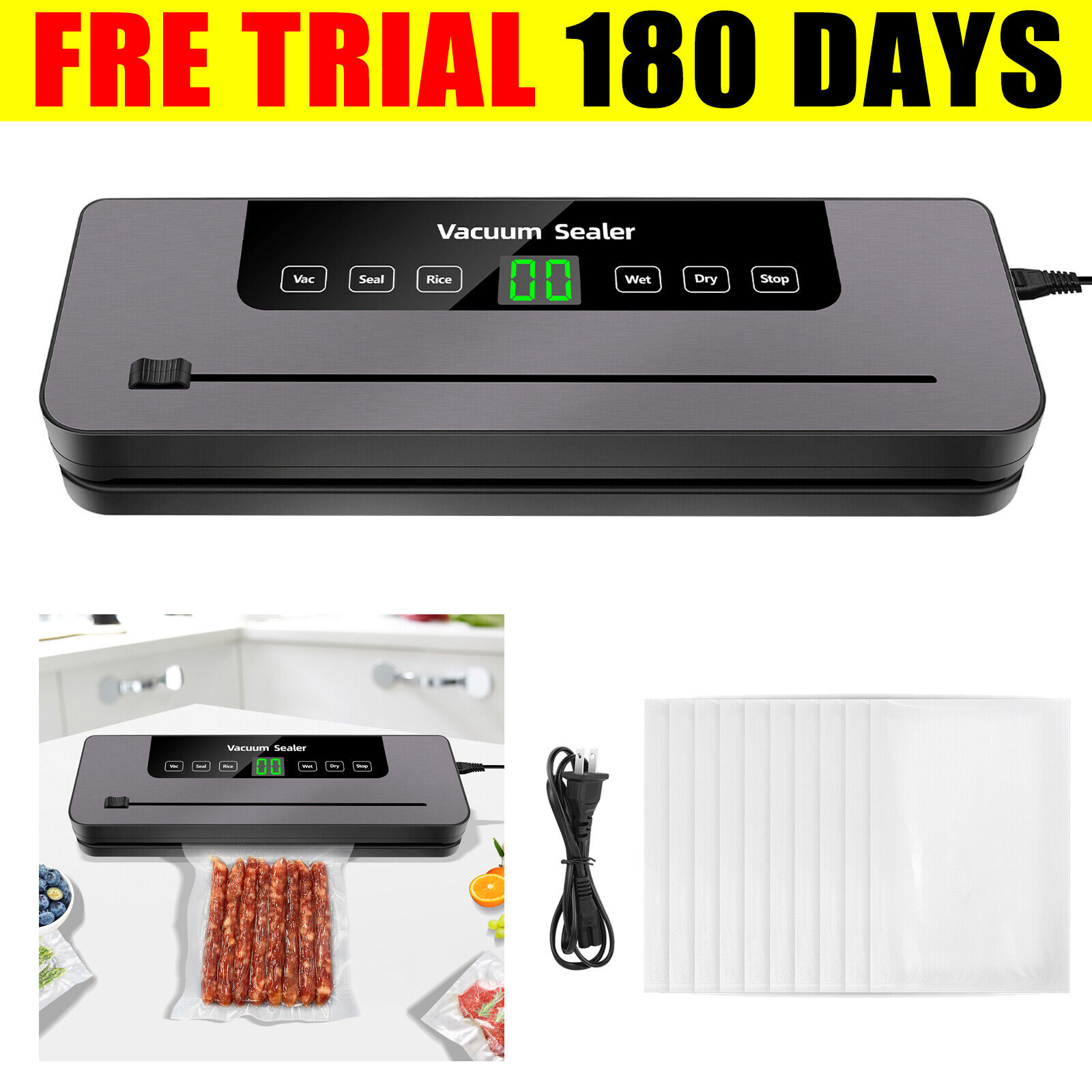 Vacuum Sealer Machine Food Dry Wet Vaccum Packing + 10 Free Sealing Bags