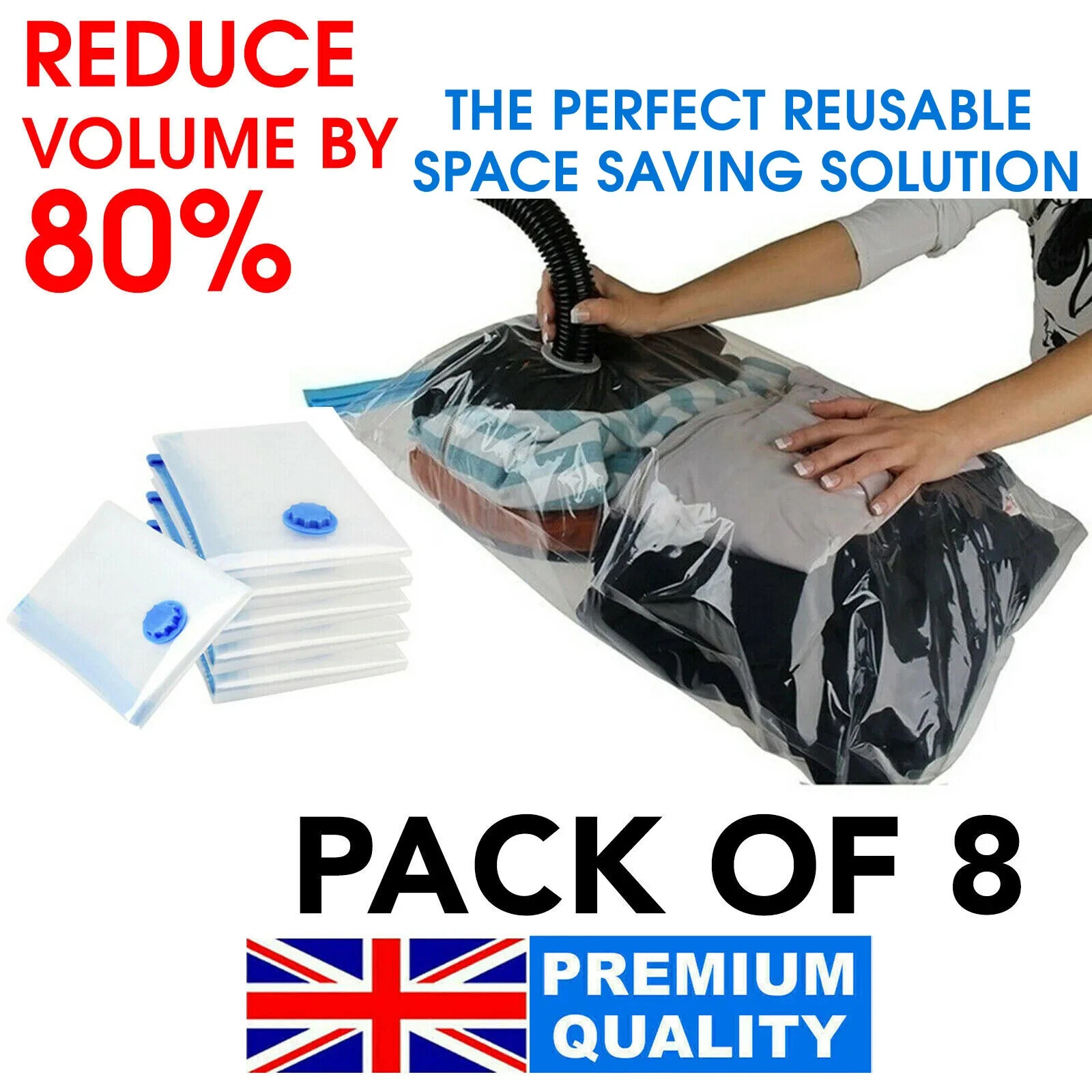 8 X STRONG VACUUM STORAGE SPACE SAVER SAVING VACUM VACCUM LARGE ORGANISER BAGS