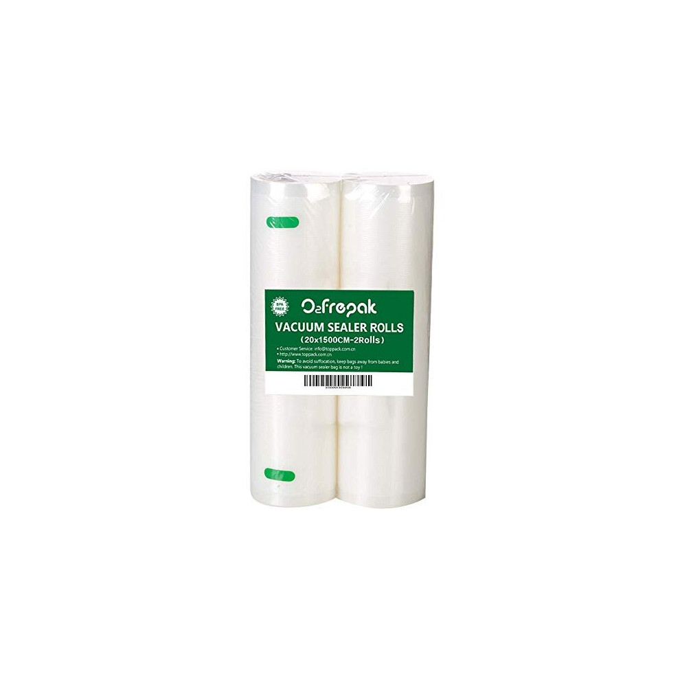 O2frepak 2Pack (Total 3000cm) 20cmx1500cm Food Textured Vacuum Sealer Bags Rolls with BPA Free,Heavy Duty Embossed Vacume Sealer Storage Bags Rol