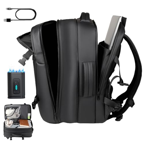 Vacuum Backpack Travel Bag: Compression Seal with Pump Fit Laptop 17 Inch Expandable Rucksack Flight Approved Carry on Cabin Size for Men Women Traveling Hiking Work Business Black