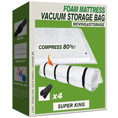 Mattress Vacuum Bag for Memory Foam Mattress, Latex Mattress Vacuum Seal Bag with Straps, Moving, Storage and Shipping (Super King)