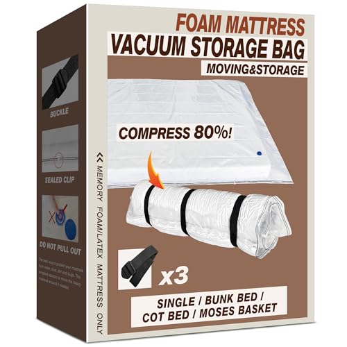 Mattress Vacuum Bag for Memory Foam Mattress, Latex Mattress Vacuum Seal Bag with Straps, Moving, Storage and Shipping (Single/Bunk Bed/Cot Bed/Moses Basket)