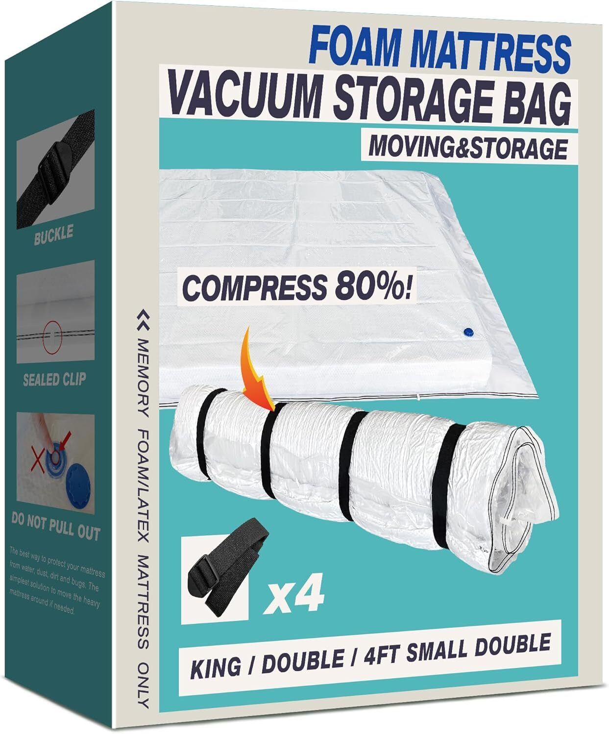 Oumaru Mattress Vacuum Bag for Moving, Vacuum Seal Bag for Memory Foam or Latex Mattress, Mattress Compression, Storage for Returns, and Moving (King/Double 4ft Small Double)