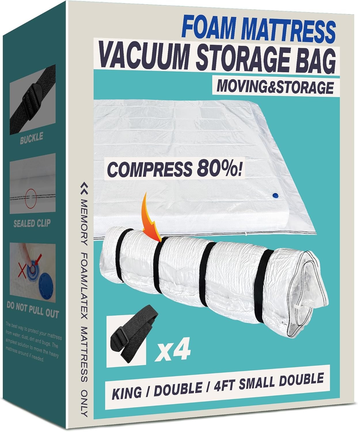 Mattress Vacuum Bag for Memory Foam Mattress, Latex Mattress Vacuum Seal Bag with Straps, Moving, Storage and Shipping (King/Double/4ft Small Double)