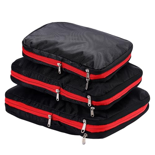 Compression Bags - 3 Pack Compression Storage Bags, Oxford Fabric Storage Bags with Double Zipper | Travel Bags Vacuum Waterproof for Clothes Storage, Black, Se référer au descriptif, Refer to