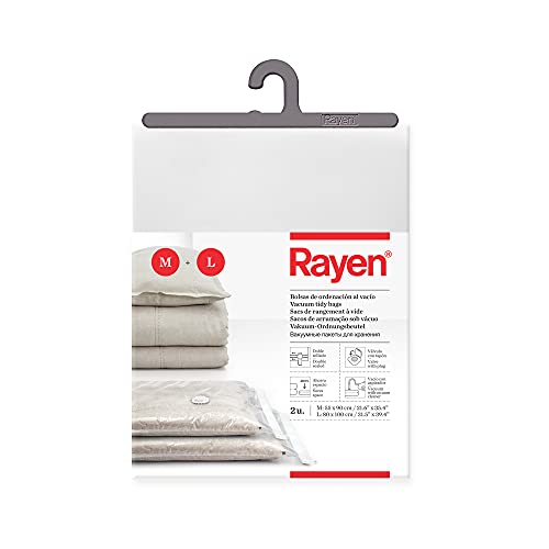 Rayen - Vacuum space saver bags for clothes. Vacuum storage bags for clothes. Set of 2 bags (55 x 90 cm and 80 x 100 cm). Transparent