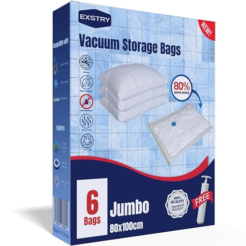 CaptainFive Vacuum Storage Bags 6 Combo (3 Jumbo + 3 Large), Space Saver Sealer Vacuum Bags for Clothes, Pillows, Duvets, Bedding, Vacuum Bags for Home Organization, Moving and Storage