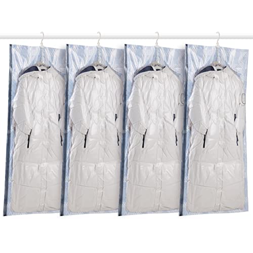 TAILI Hanging Storage Bags Vacuum Pack for Clothes, 4 Packs Long 135x70 CM, Vacuum Seal Storage Bags Packfor Suits, Dress Coats or Jackets, Closet Organizer
