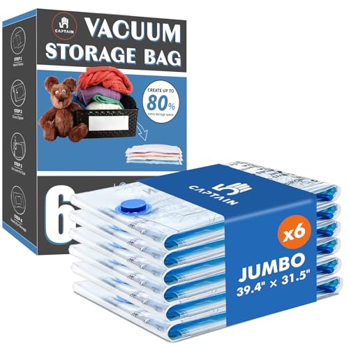 CaptainFive Vacuum Storage Bags Jumbo 6 Packs(39'' x 31.5'), Vacuum Pack Bags for Clothes, Pillows, Comforters, Duvets, Vacuum Bags for Storage for Home Organization, Moving and Storage, Space Saver