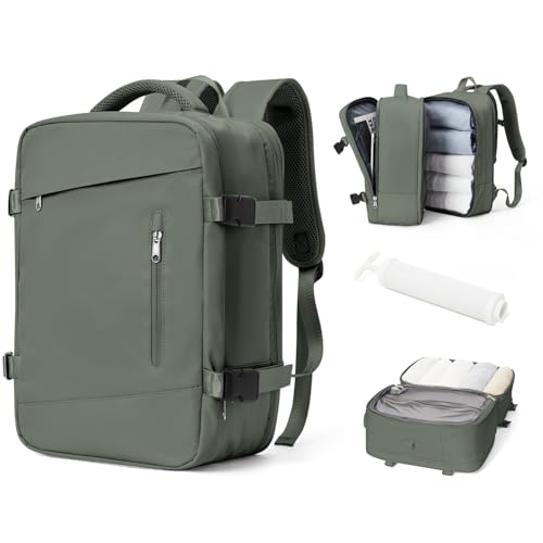 winspansy Vacuum Backpack Travel Bag Compression Backpack with Pump, 40x20x25 cm, Vacuum Bags for Clothes Travel, Space Saver Cabin Storage Compression Bag for Women Men -Green