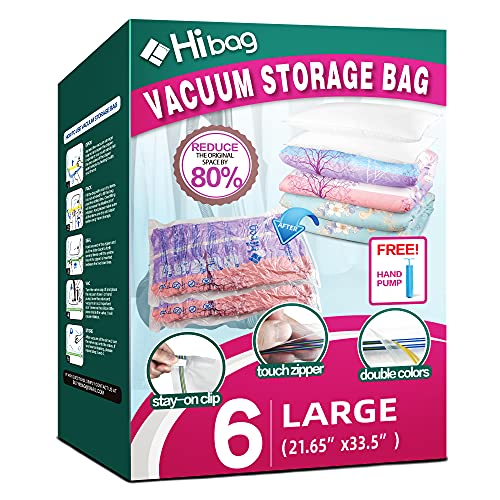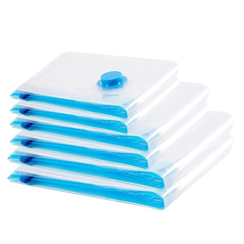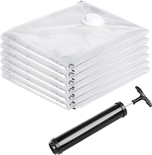 6 Pack Vacuum Storage Bags for Clothes, Clothes Vacuum Bags Save 80% Space, Work with Vacuum Cleaner, Travel Hand Pump Included (6-Large)