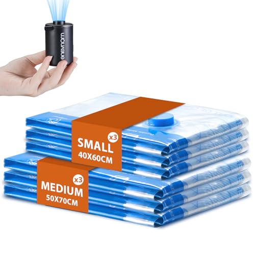 Vacuum Compression Storage Bags for Clothes - 6 Pack Reusable Space Saver Bags with Wireless Electric Air Pump for travel (3 M + 3 S)