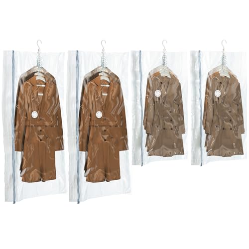 TAILI Hanging Vacuum Storage Bags for Clothes, Coats, 4 Packs (2 Long 135x70CM & 2 Short 105x70CM) Storage Bags Vacuum Pack for Suits, Coats, Jackets or Dresses, Closet Organizer Space Saver Vaccum