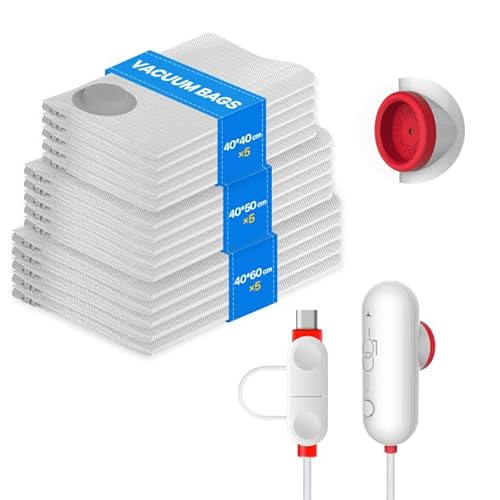Vacbird Vacuum Storage Bags with Electric Pumps, 15-Pack Vacuum Bags for Travel Clothes, Reusable, Suitable for Clothing storage, Travel, Luggage and Suitcase Storage