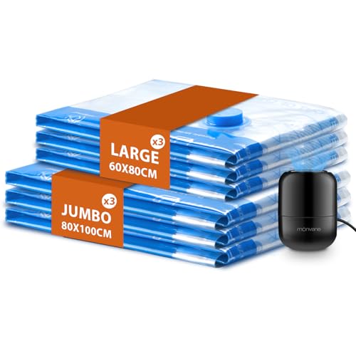 Vacuum Compression Storage Bags for Clothes - 6 Pack Reusable Space Saver Bags with Wired Electric Air Pump for travel (3 Jumbo + 3 Large)