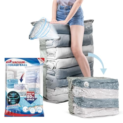 Vacuum Storage Bags for Clothes Duvets Travel - 12 Pack 3 Sizes Jumbo Medium Small, Reusable No Leak Compression 80% More Space Saver, Vaccumm Suction Seal Bag Extra Durable, Bedding Blanket Vacume