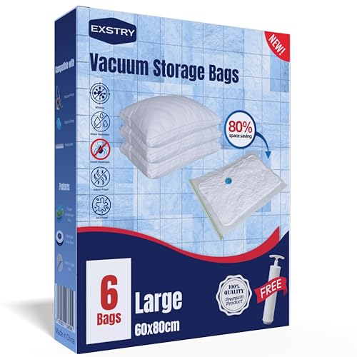 Vacuum Storage Bags for Clothes - 6 Pack 80 X 60cm Reusable Clothes Storage Bags Vacuum Sealer Bags with Double Zip Seal Travel Space Saver Bags for Duvets, Bedding, Quilts, Pillows, Clothes