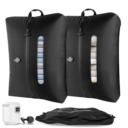 2025 Premium Vacuum Bags for Travel Clothes with 5KPa Pump & See-Through Window 420D Nylon Durable Reusable IP67 Waterproof Space Saver Bag for Luggage, Backpack, Suitcase (2PC+ Pump)