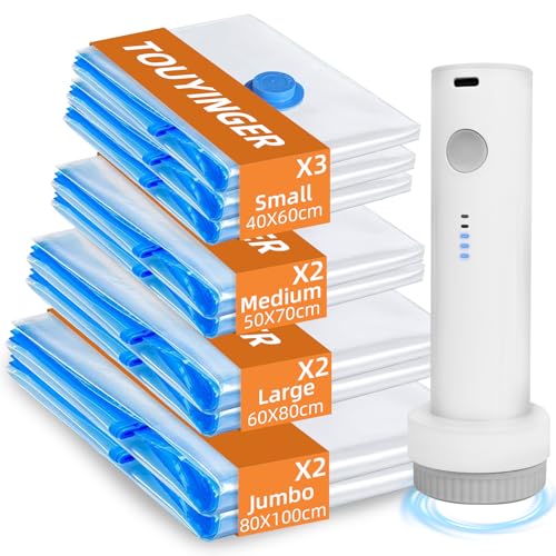 TOUYINGER Vacuum Storage Bags with Wireless Pump, 9 Pack Portable Travel Vacuum Bags for Clothes, Reusable Space Saver Bags for for Travel and Home