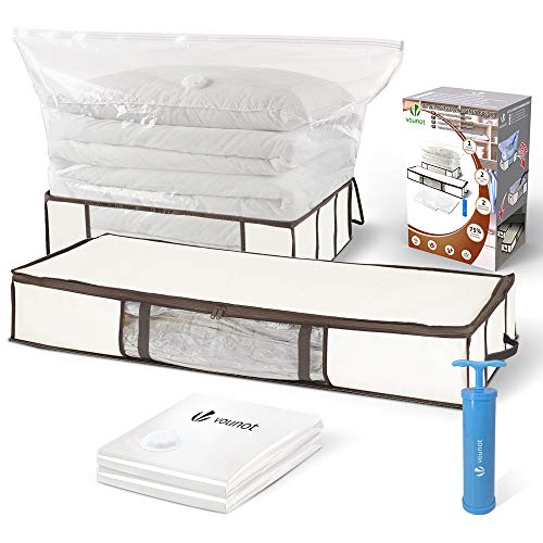 VOUNOT 2 Large Underbed Storage Bags and 2 Vacuum Storage Bags for Duvets, Clothes, Bedding, Pillows, Set of 4 with Pump, Beige, 4350670766103
